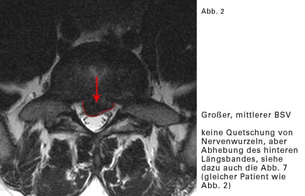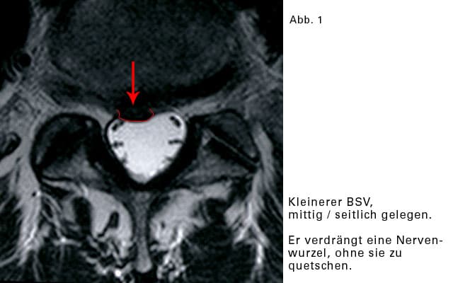 Die meisten BSVs verursachen keine Schmerzen. Kernspinuntersuchungen an Gesunden, also an Menschen, die noch nie Rückenbeschwerden hatten und auch zum Zeitpunkt der Untersuchung beschwerdefrei waren, haben nachgewiesen: