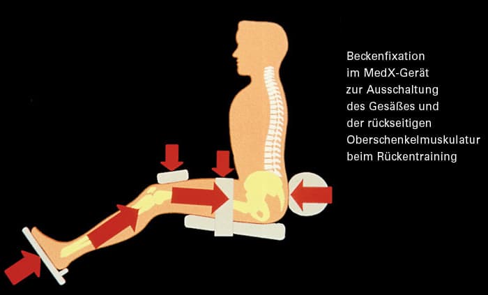 Die sicherste und erfolgreichste Methode der Rückenkräftigung ist das Training der gerätetechnisch isolierten Rückenstrecker. Dabei werden die Gesäßmuskeln und die rückseitigen Oberschenkelmuskeln ausgeschaltet. Die Rückenstrecker werden gezielt trainiert. Dieses gezielte Training wurde mit dem MedX-Gerät weltweit erstmals ermöglicht.