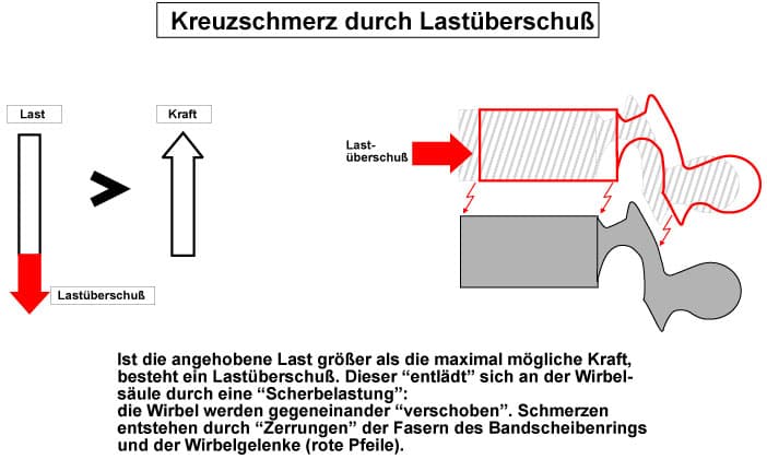Diese 5 kg mehr, bzw. das dadurch an der WS erzeugte Biegemoment, kann nicht entsprechend kompensiert werden durch Kraft, BS-Druck und Faserspannung. Die Kraft dieser zusätzlichen 5 kg wirkt aber auf Ihre WS ein, Sie heben diese Last ja an.