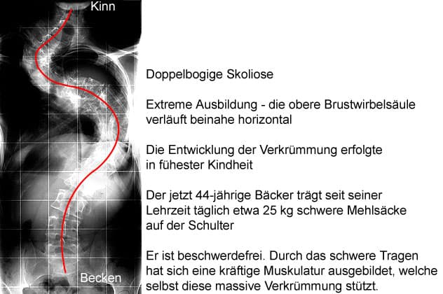 Meistens sind die Jugendlichen beschwerdefrei. Dies liegt daran, dass die in der Jugend kräftig entwickelte Muskulatur und der jugendlich straffe Bandapparat auch größere WS-Verbiegungen beschwerdefrei tolerieren.