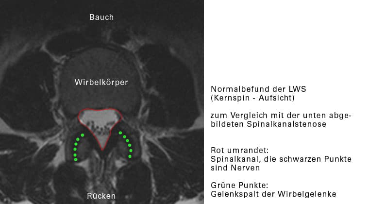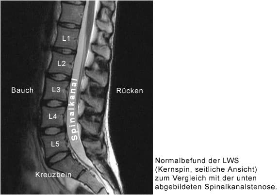 Es liegt eine krankhafte Verengung des Wirbelkanales vor (Stenose des Spinalkanales). Diese tritt in der Regel erst in höherem Alter auf. Sie wird verursacht durch: